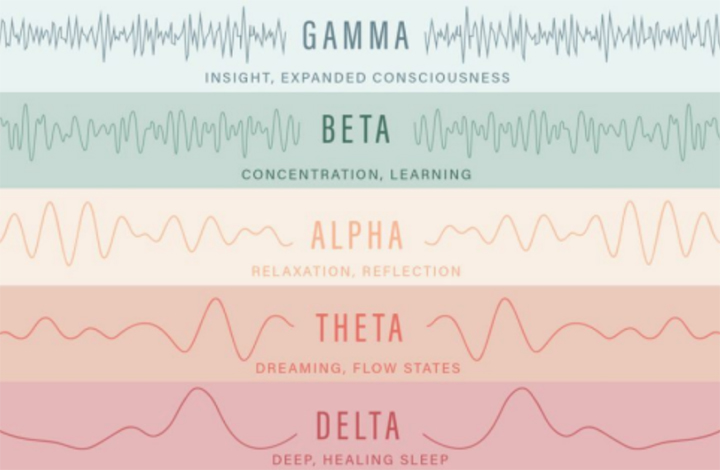 Based on the picture above, you can see that key part of the magic is happening in the human brain. Electrical activity in the brain is displayed in the form of brainwaves. There are five categories of these brainwaves, ranging from the most activity to the least activity.